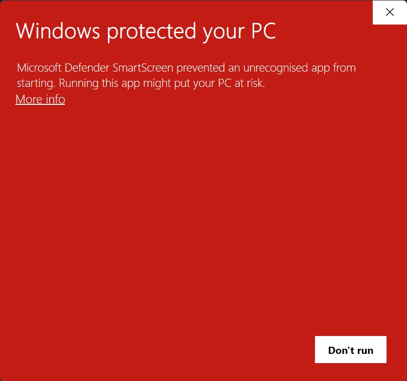 The windows version is not signed (yet), so you will probably get a warning from windows. You can ignore this warning and install the app by clicking on "more info" & then run it: